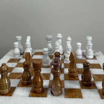 화석 오닉스 대리석 모던 체스 세트 브라운 수제 스톤 보드 프리미엄 천연 대리석 거실 주방 게임 세트 공장