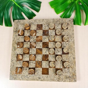 대리석 화석 갈색 체커 보드 게임 수제 돌 보드 조각 현대 프리미엄 대리석 게임 세트 안전한 거실 주방용