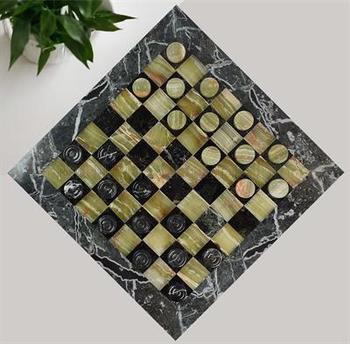 대리석 녹색 검은 체커 보드 게임 수제 돌 보드 조각 현대 프리미엄 대리석 게임 세트 안전한 거실 주방